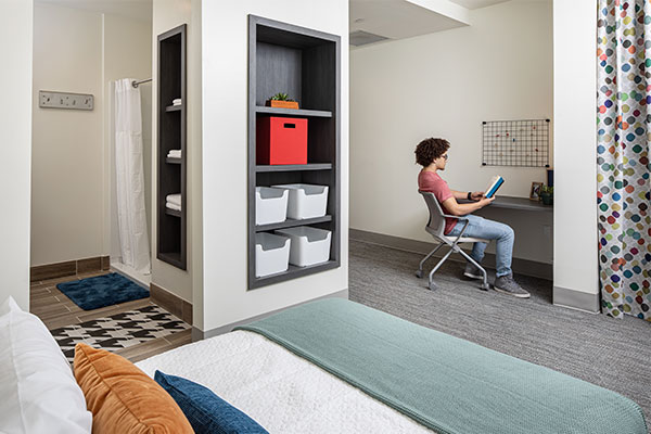 Adolescents ages 14 to 17 entering the residential treatment program admit to the J. Rex Fuqua Campus. The J. Rex Fuqua Campus includes 26 units bedrooms and private bathrooms. Teens participate in a structured daily structure including evidence-based therapy, academic instruction, and expressive therapies like art and music therapy.